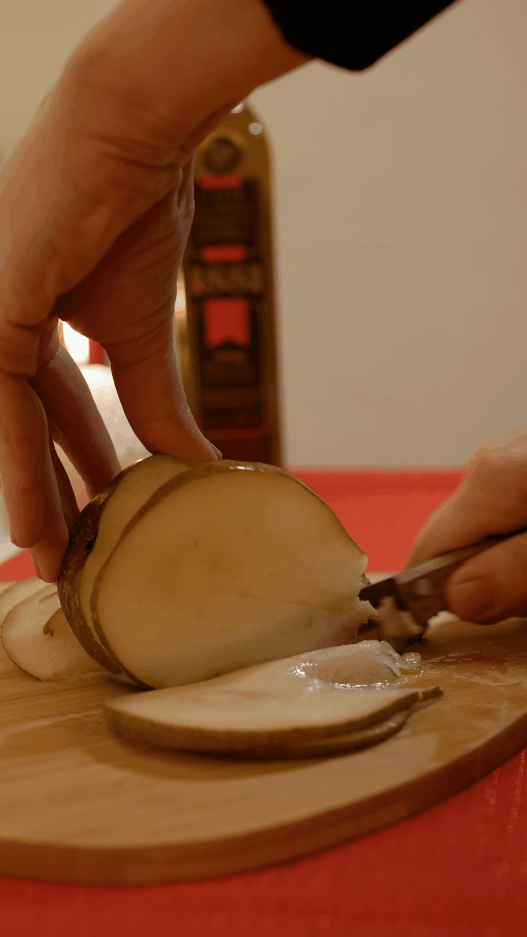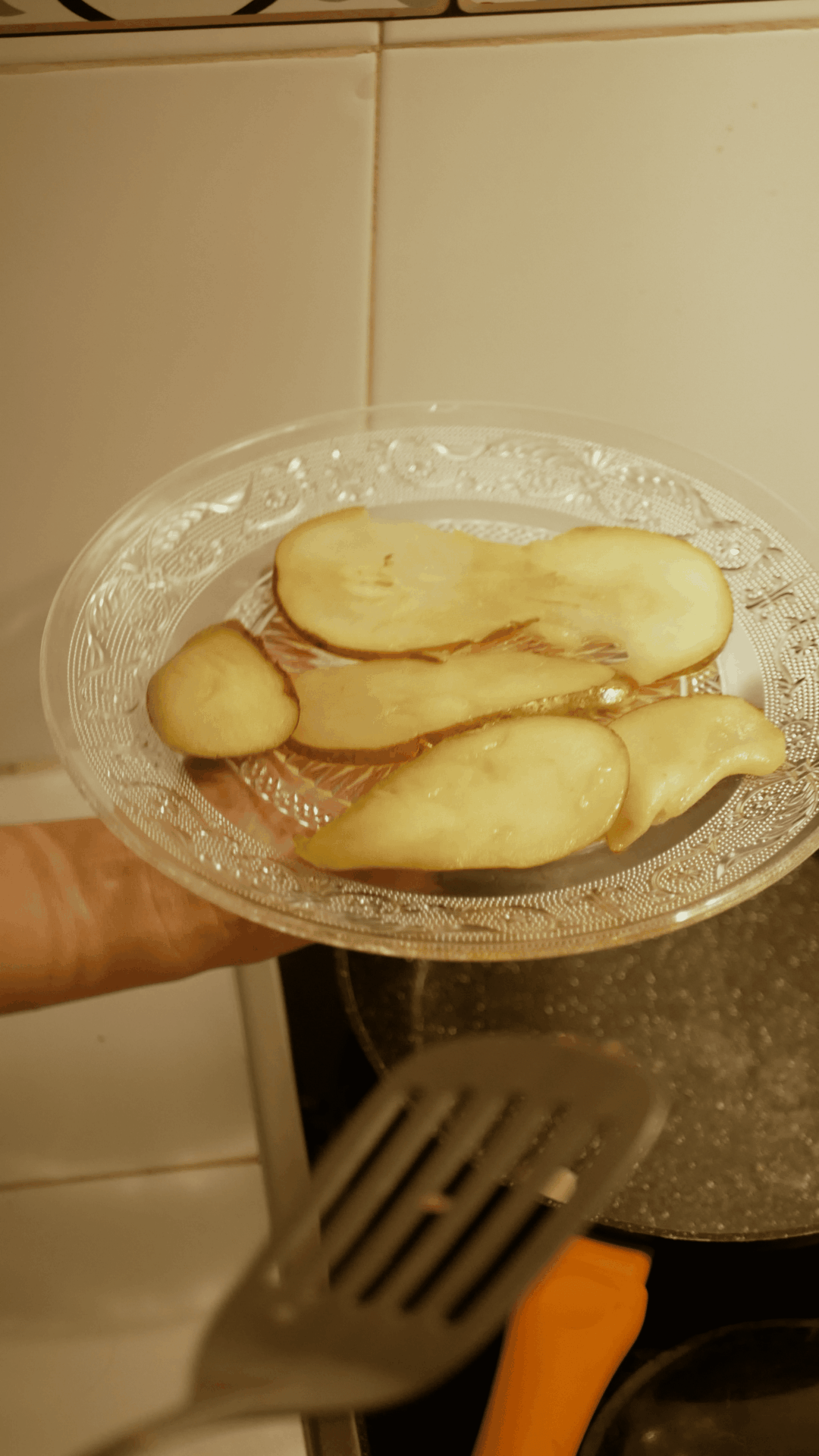 - Lo primero es lavar la pera y cortarla a tiras.