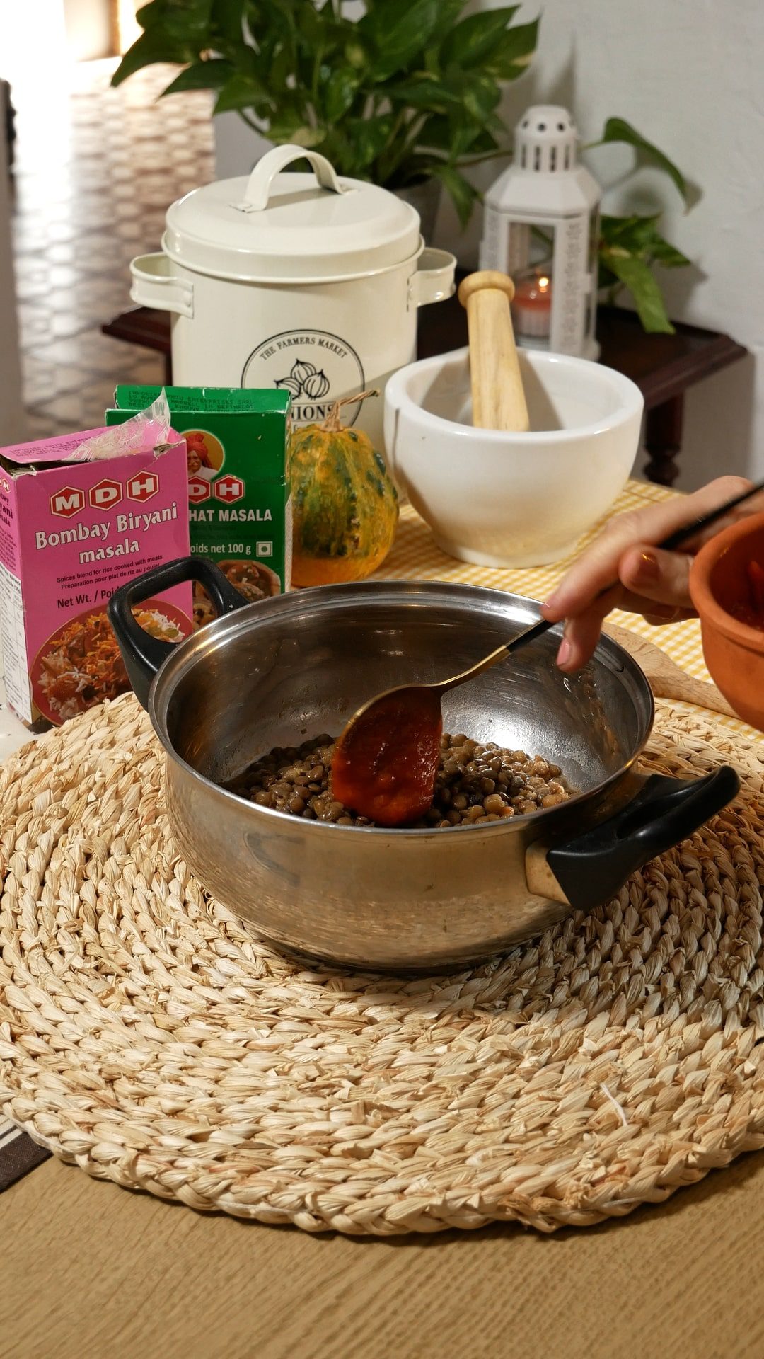 - Mientras, mezcla los restos de lentejas con el tomate y las especias