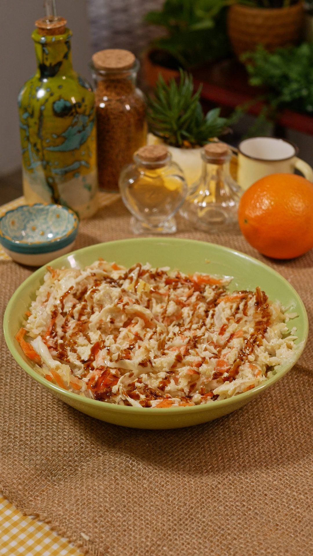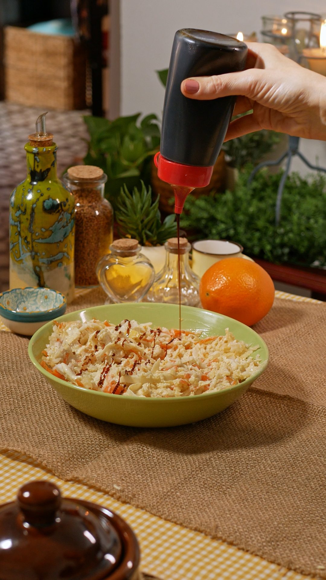 Aquí es donde nos ponemos creativos. Olvida la típica coleslaw de supermercado bañada en mayonesa industrial; en mi cocina, la hacemos a mi manera. He transformado este clásico en una propuesta mucho más original, vibrante y sofisticada.