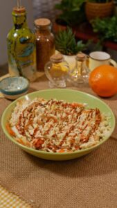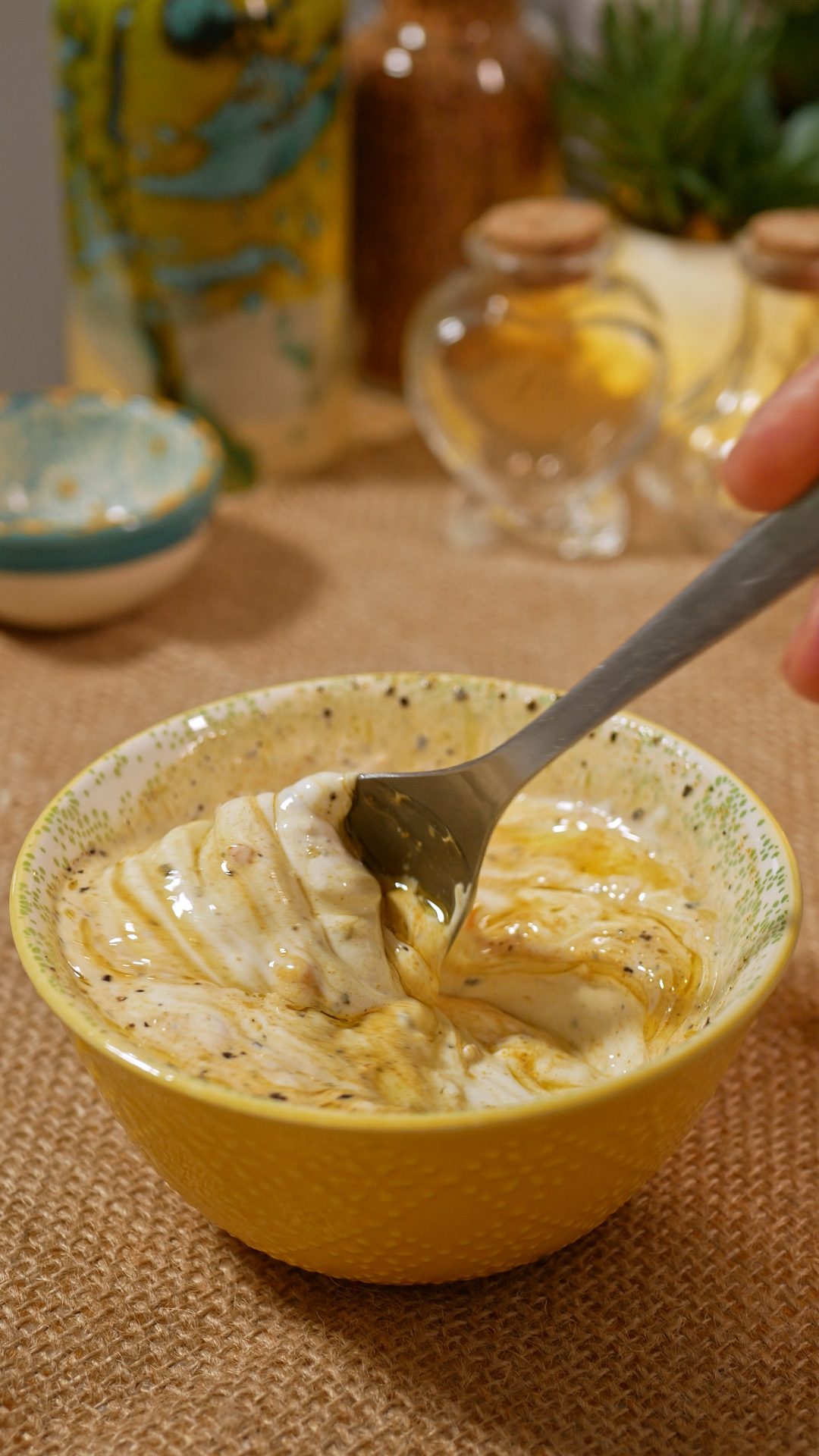 Para el aliño, apuesto por una base de yogur griego, que aporta una cremosidad sedosa pero mucho más ligera y saludable que las salsas convencionales. Pero el verdadero secreto —ese que despertará la curiosidad de todos— está en los matices: