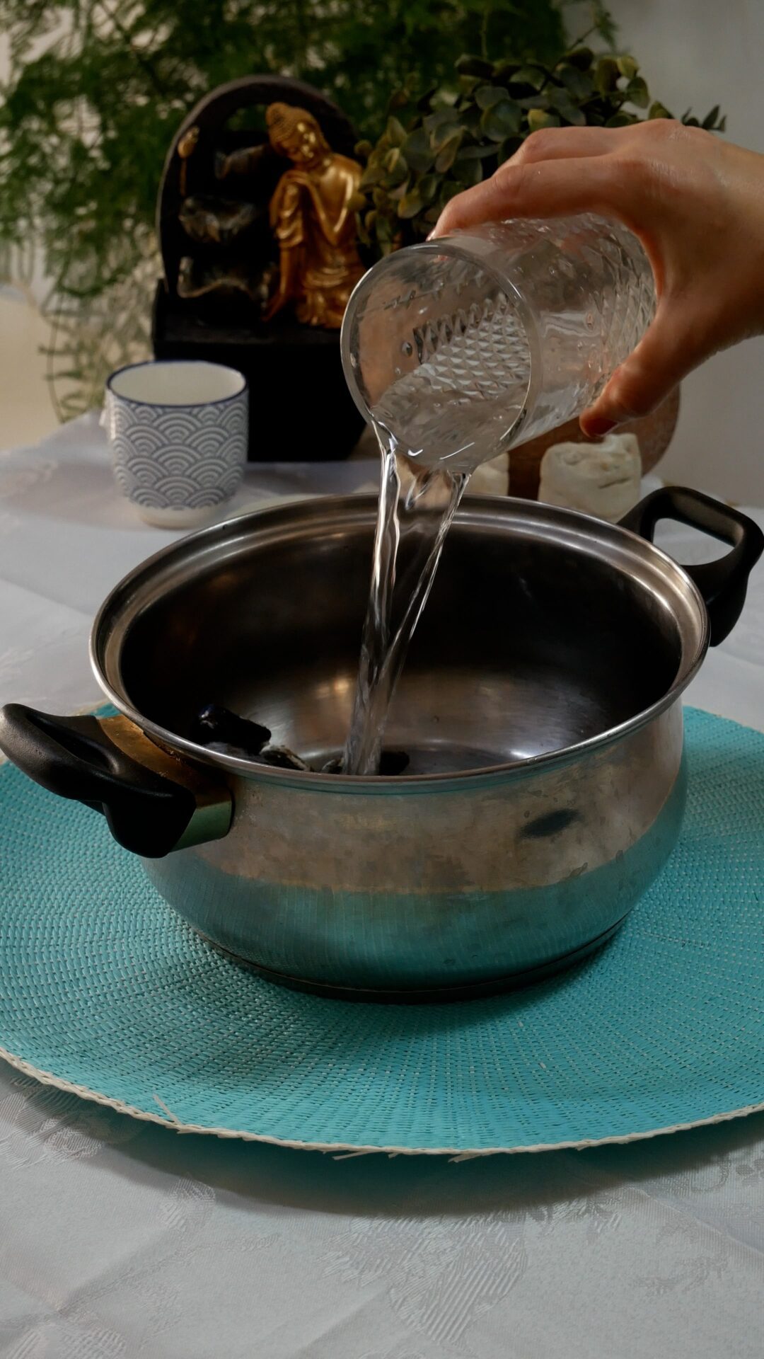 - Abrirlos con medio vaso de agua en una olla tapada durante tres o cuatro minutos. Reservar.